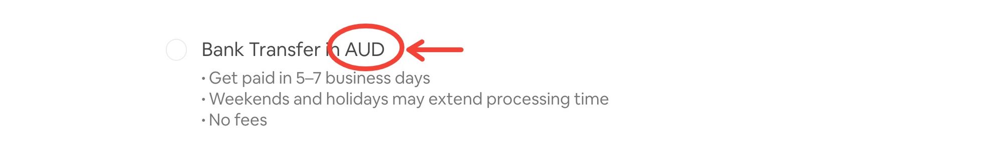 Airbnb only allows to use local bank details for each billing country. Which mean you won't be able to add your UK bank account as a Bank Transfer payout method in Australia. So, you will need to obtain local bank details as instructed below.