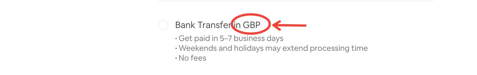 In most cases the payout currency is the national currency of the country you choose. GBP for the United Kingdom, EUR for all Eurozone countries, AUD for Australia, NZD for New Zealand etc.