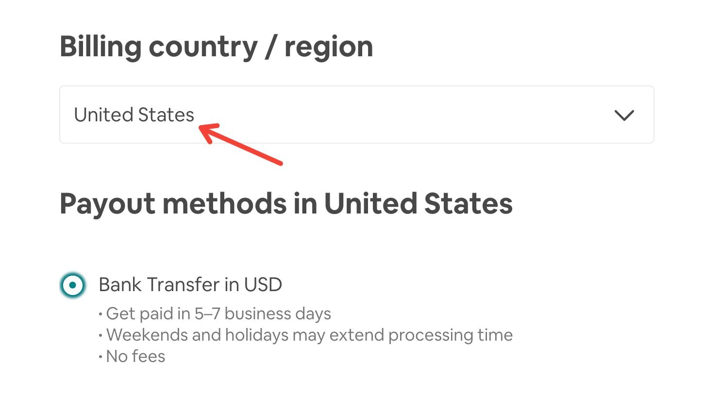 - When you add your TransferWise account as an Airbnb payout method you will need to change the Billing country accordingly. Like the United States for USD account and select Bank Transfer payout option.