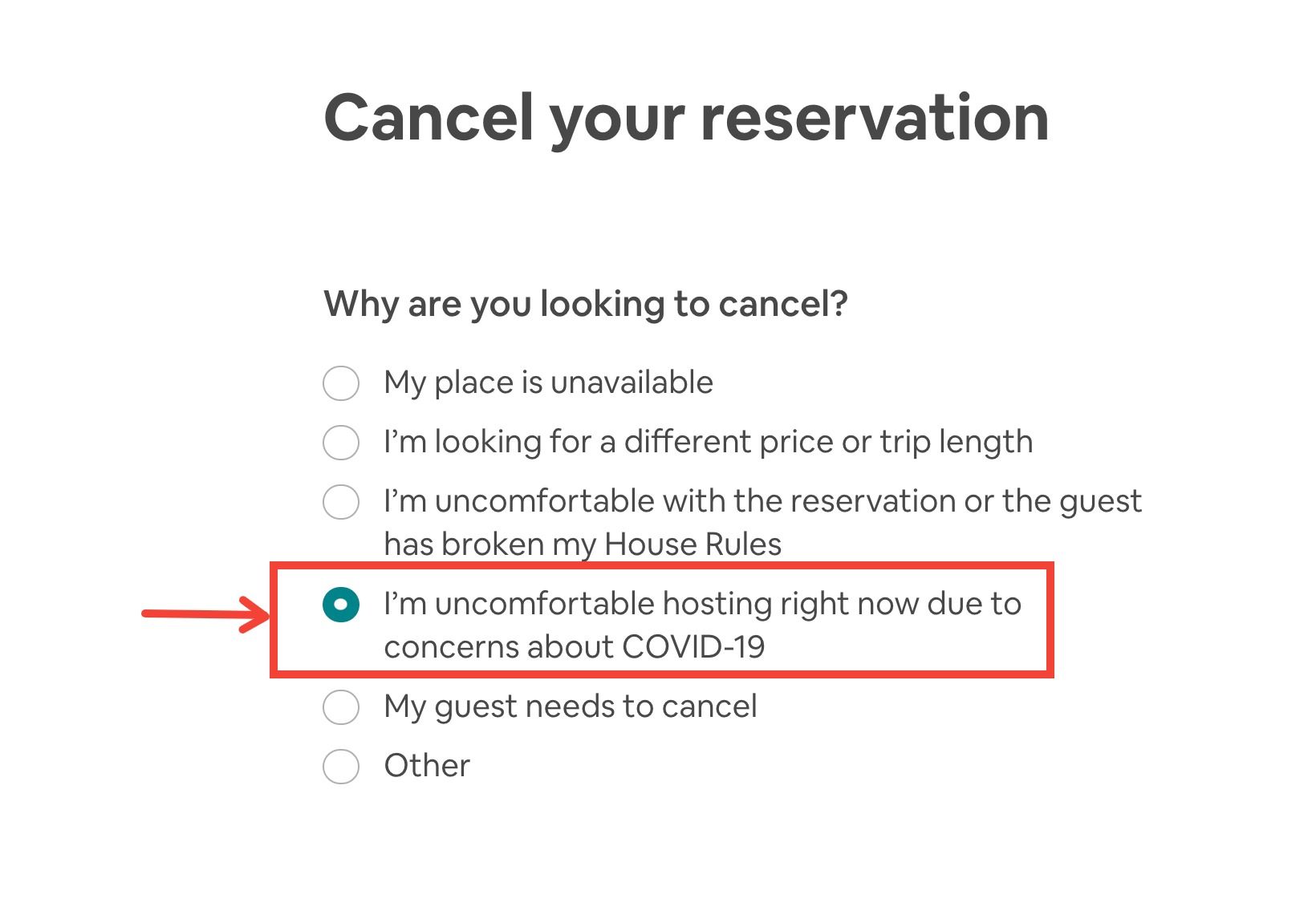 - Select the reason "I’m uncomfortable hosting right now due to concerns about COVID-19" > click Next
