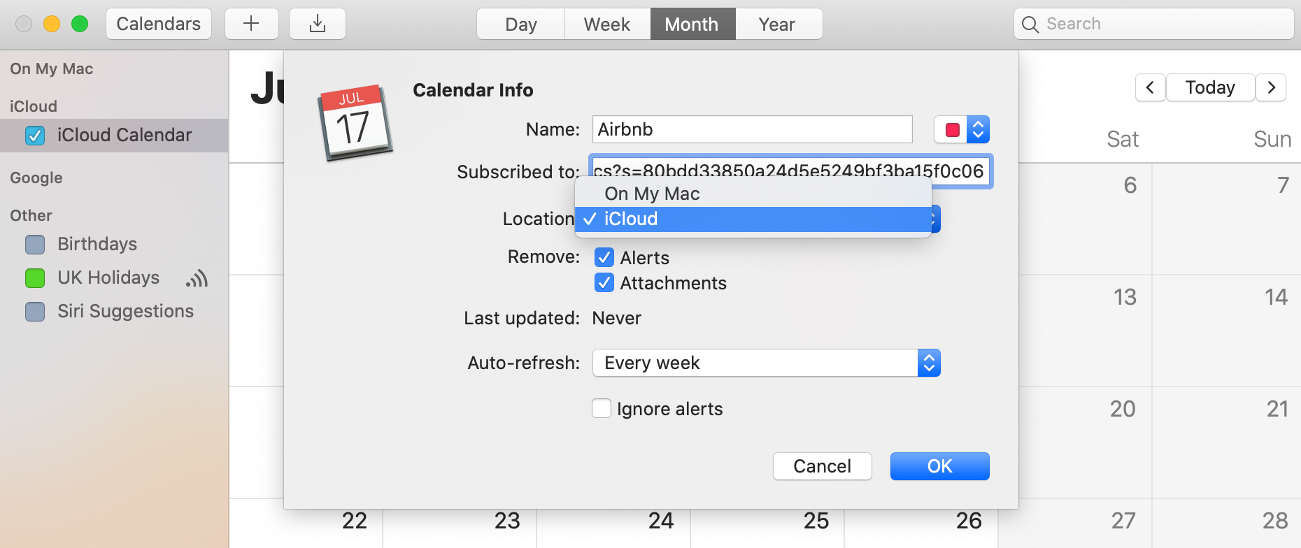 Calendar subscription is a great way to synchronize your Airbnb reservations with your MacBook. And with iCloud, you will see your Airbnb calendar across all your devices (iPhone, iPad, iWatch).