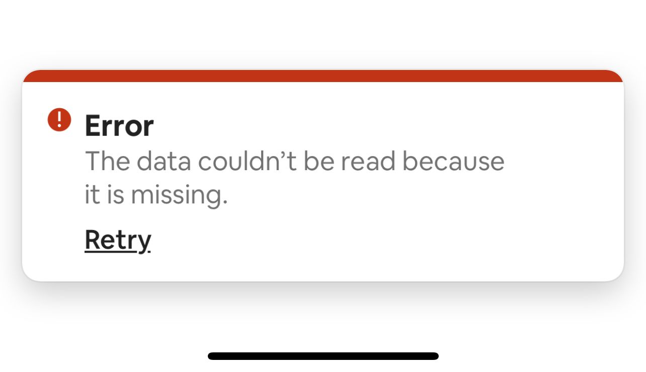 Airbnb users report they see "The data couldn’t be read because it is missing" in the Airbnb app.